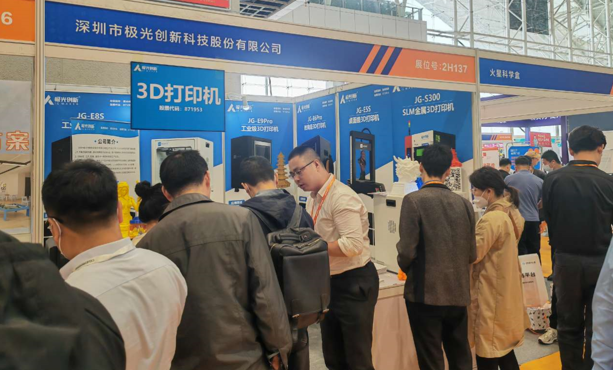 在此次展會(huì)上,極光創(chuàng)新攜教育級(jí)3D打印產(chǎn)品“JG-E8L”、JG-E6Pro、 JG-E5S 和一系列具有代表性的3D教育產(chǎn)品模型亮相CCE素博會(huì)2號(hào)館H137展位,為教育行業(yè)帶來了一場(chǎng)奇妙震撼的科技盛宴。
