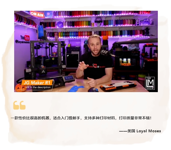 最近幾個月,極光創新R1憑借其極具人性化的簡單設計和高精度的打印質量,被海外市場一致認為是最具性價比的入門級3D打印機,受到眾多消費者的喜愛,許多權威人士和社媒博主都對這款3D打印機給予了高度評價,認為它是入門級用戶的理想選擇。