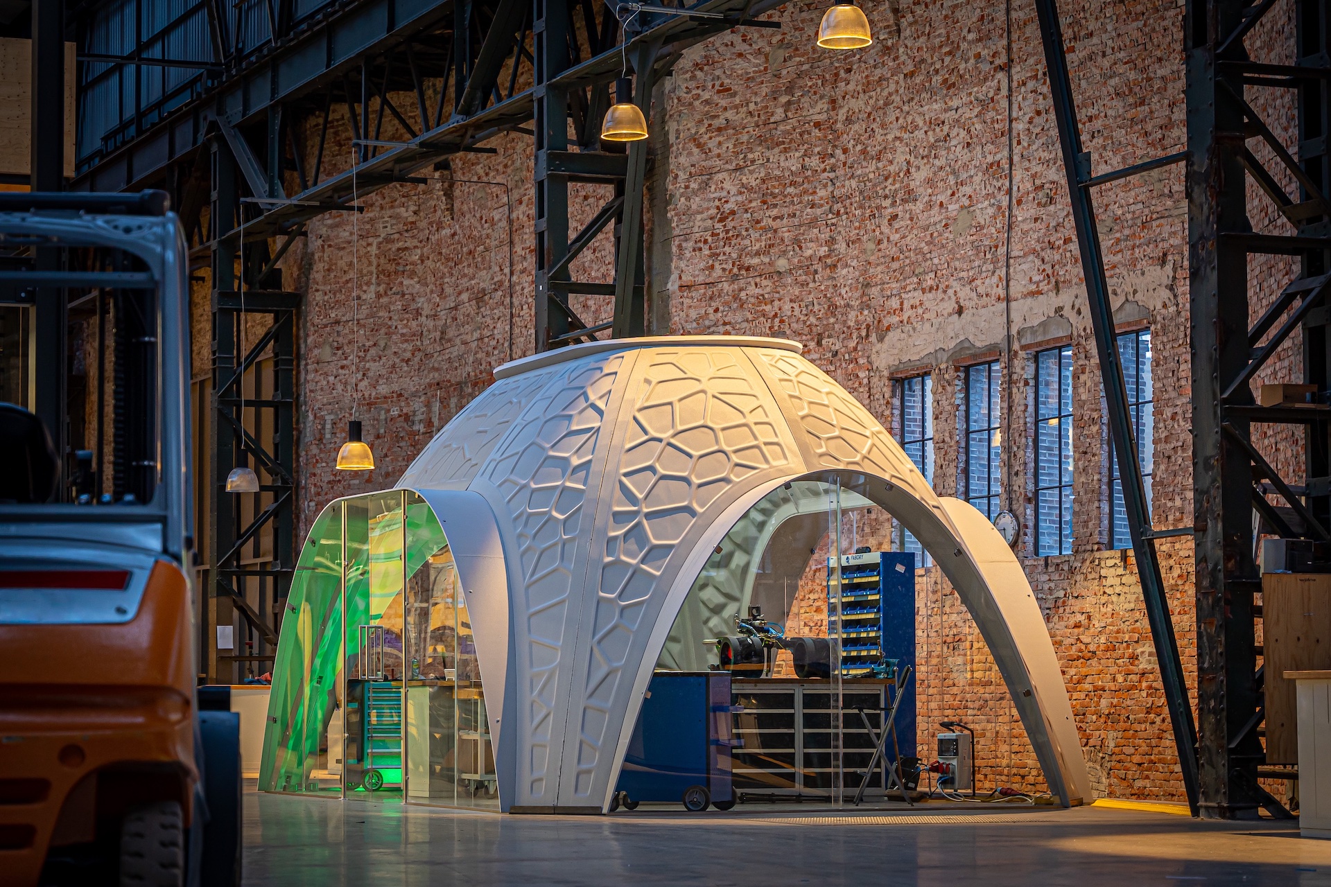 △為鹿特丹創(chuàng)客區(qū)設(shè)計(jì)的3D打印模塊化工作空間。圖片來(lái)自ARCHITECH公司。