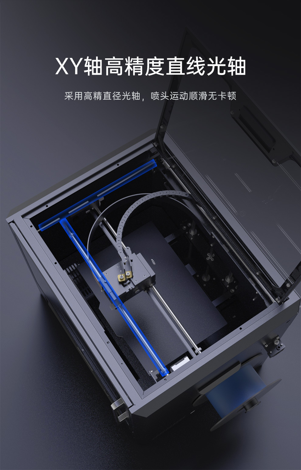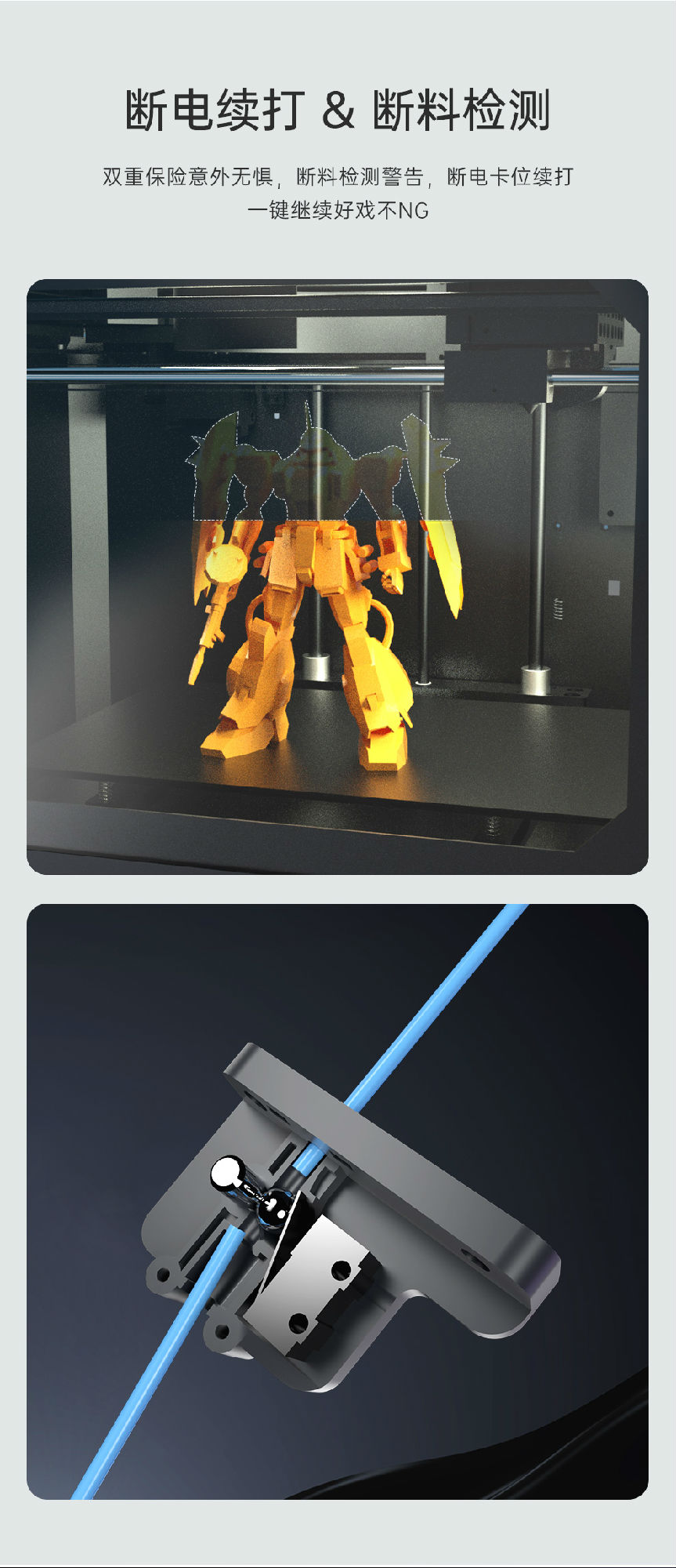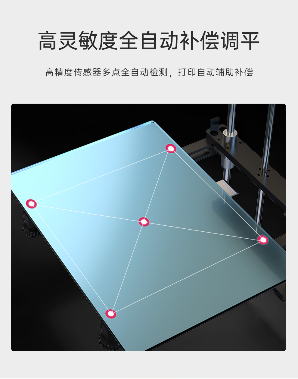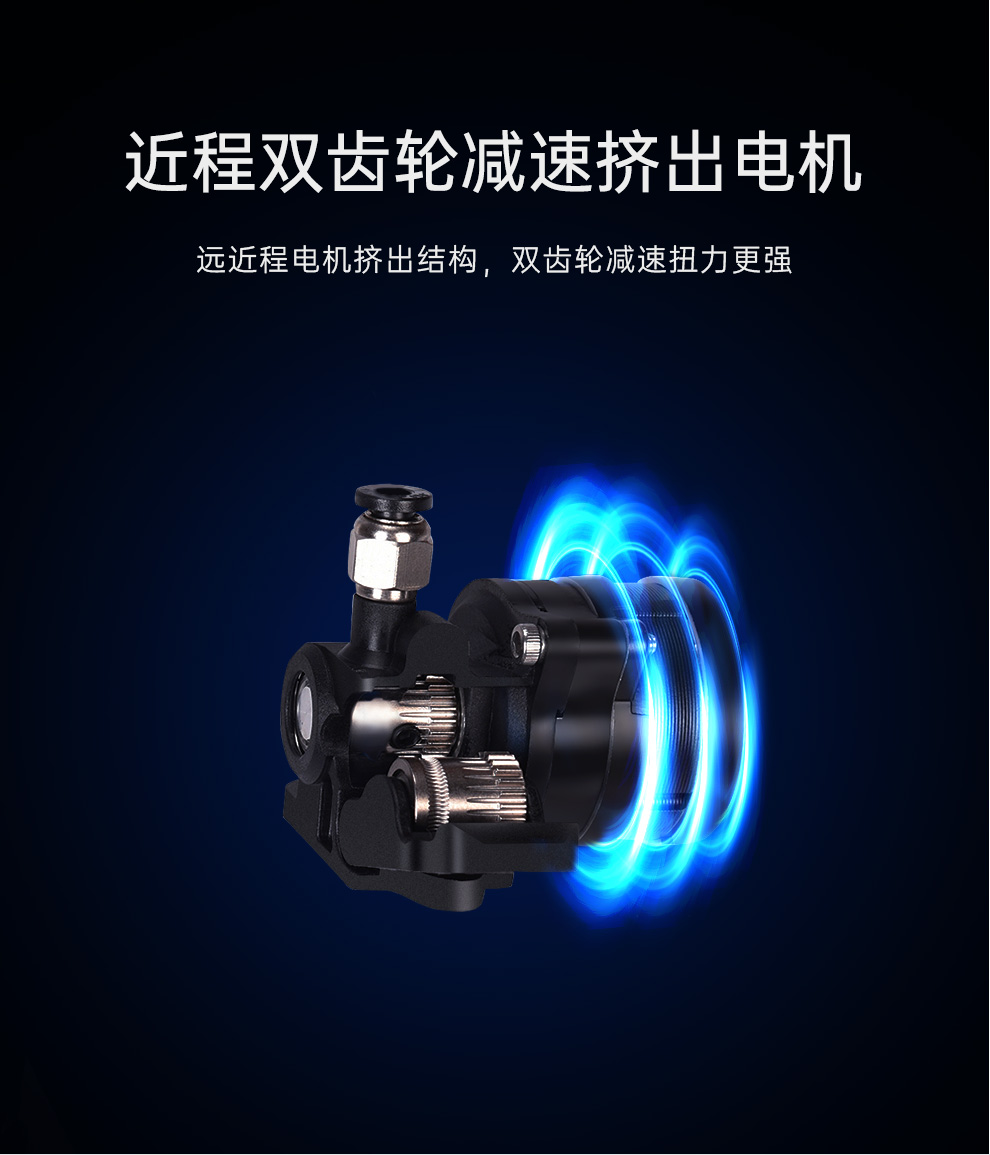 雙齒輪減速扭力更強,高精度傳感器多點全自動檢測,打印自動輔助補償,賦予3D打印機更強勁動力,運行流暢不卡頓