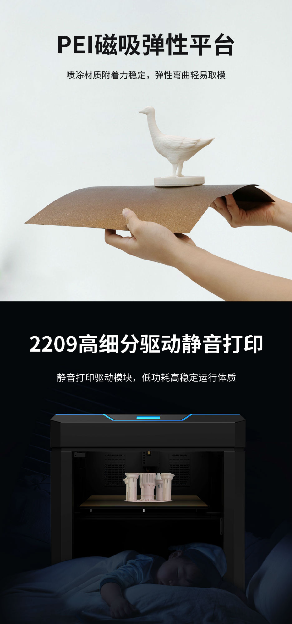 成型尺寸 500*400*600mm,擁有更強大的打印能力和打印精度,雕細琢每一個細節,全新升級,全自動補償調平,打印模型堪比藝術品