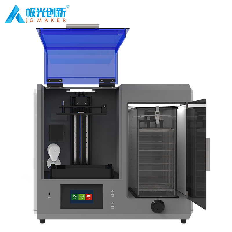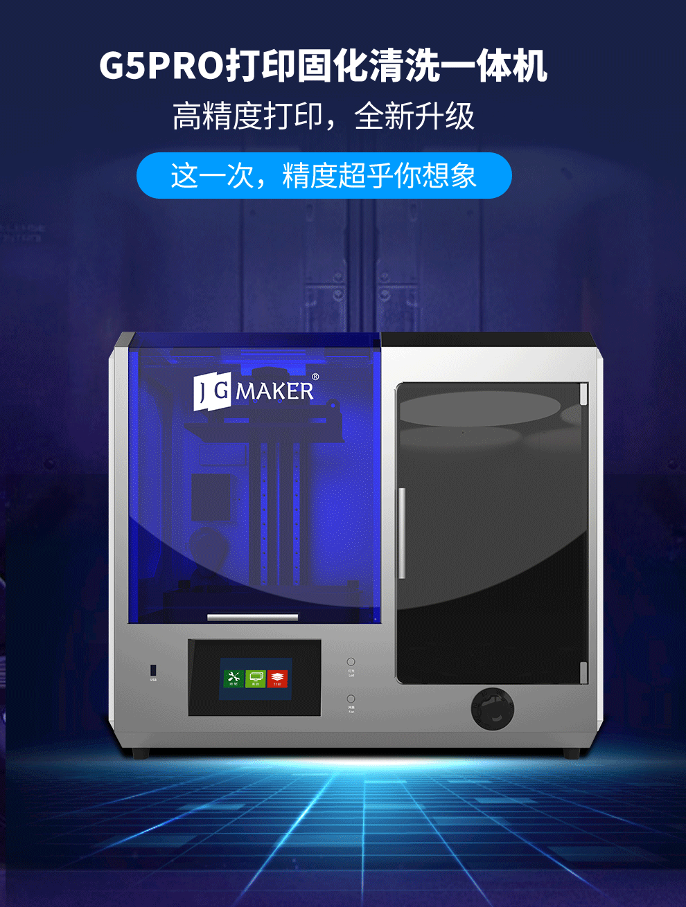 JG-L5 Pro 采用10.1寸6K透光固化屏,理論精度可高達(dá)0.045mm;增加打印、清洗、固化 三合一功能,內(nèi)置攝像監(jiān)控;對斷料檢測傳感器模塊做了升級,以及缺料會自動提示加料。