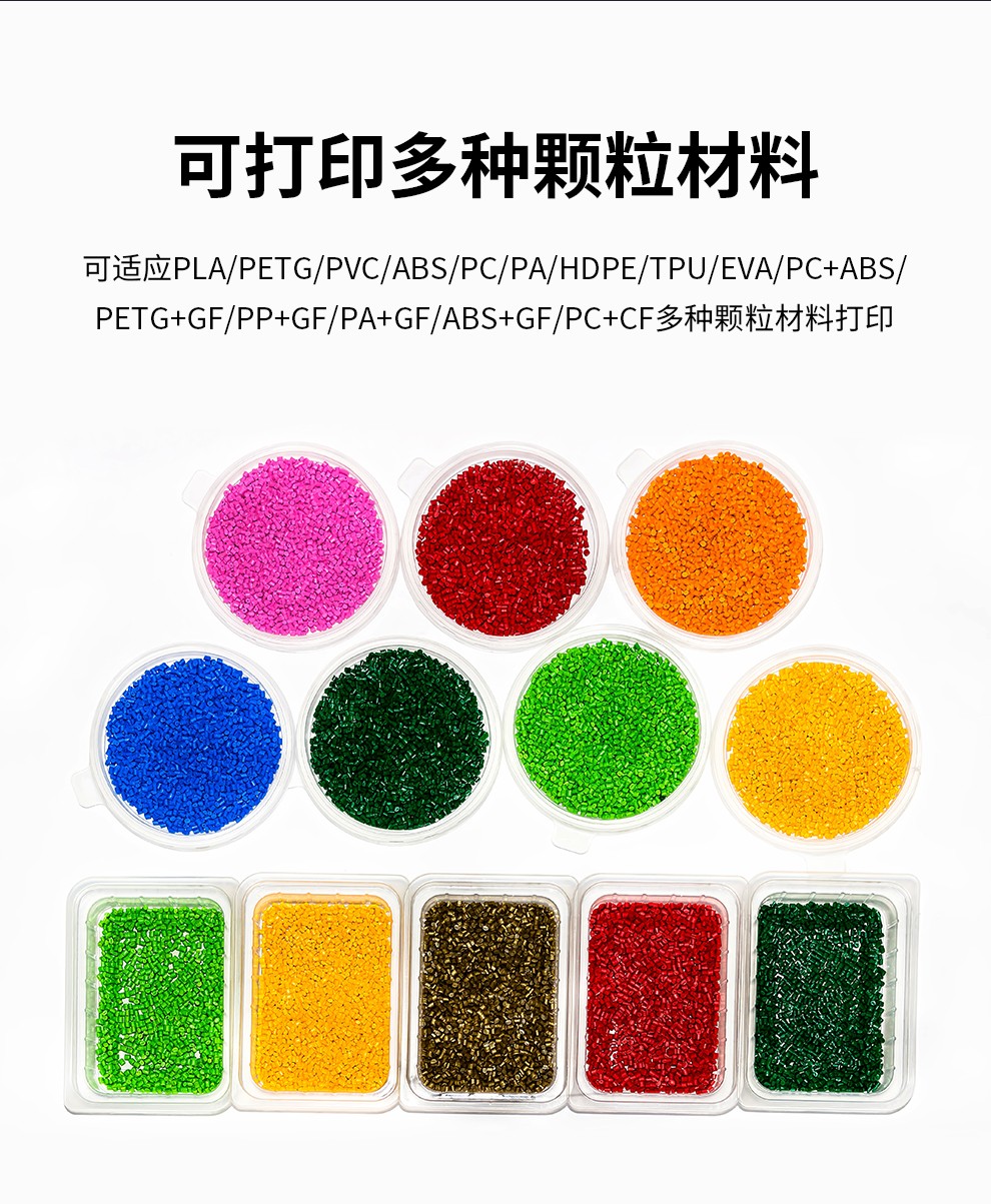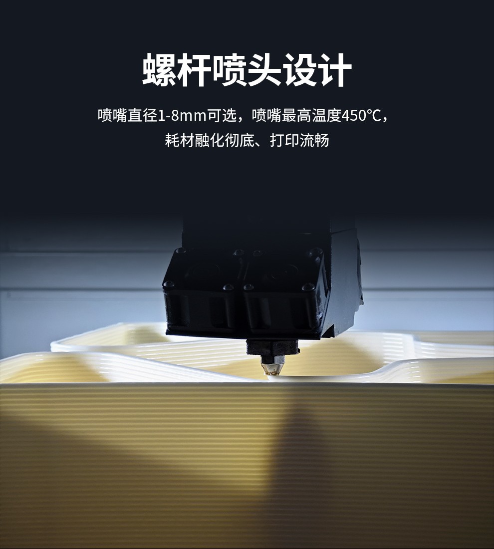 1.8米的超大打印尺寸,適配多種顆粒料耗材,具備更強大的塑造能力
